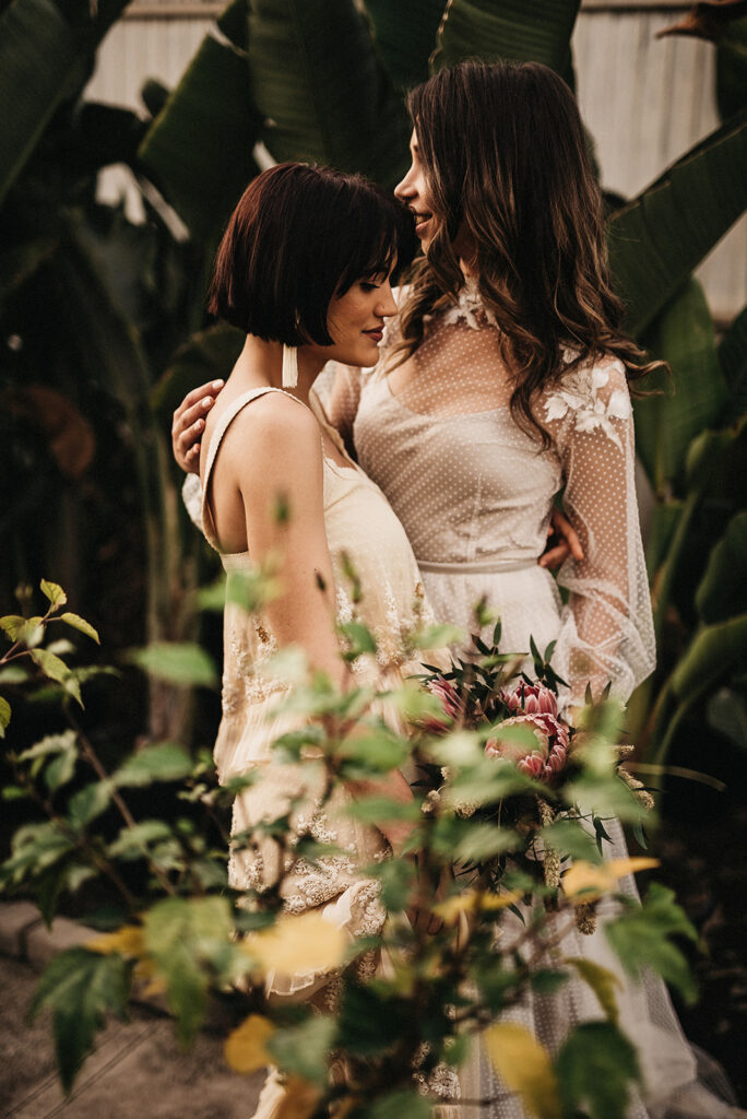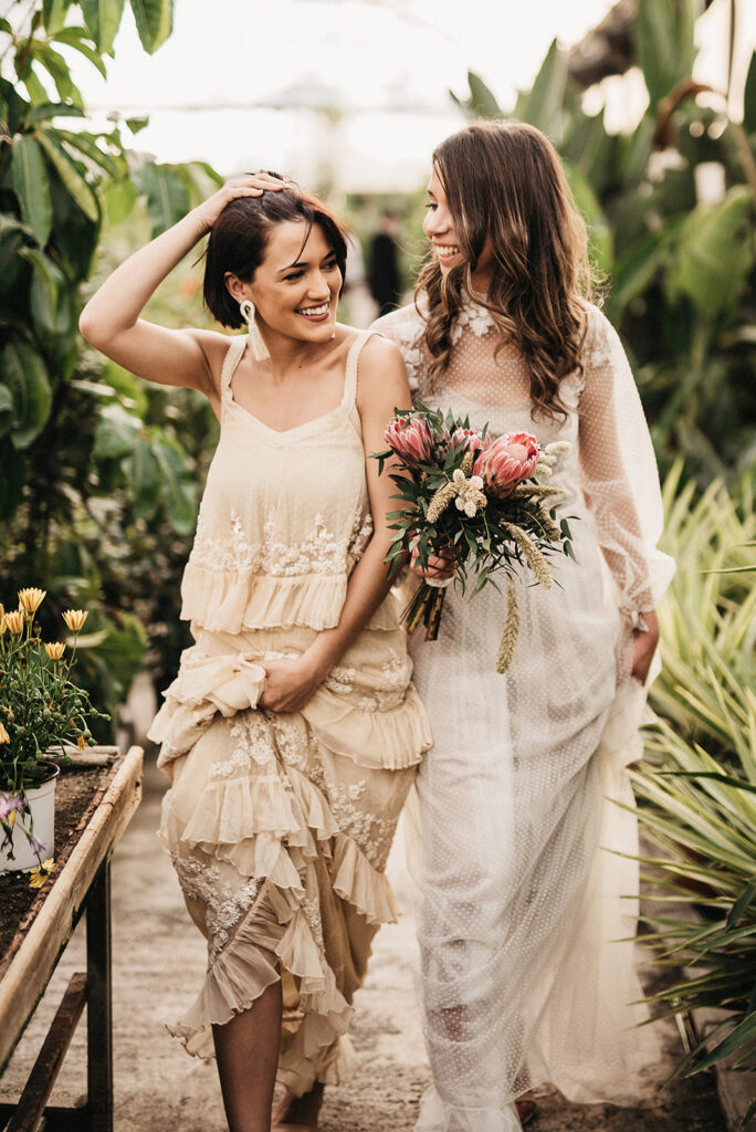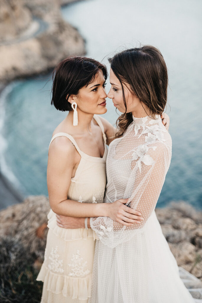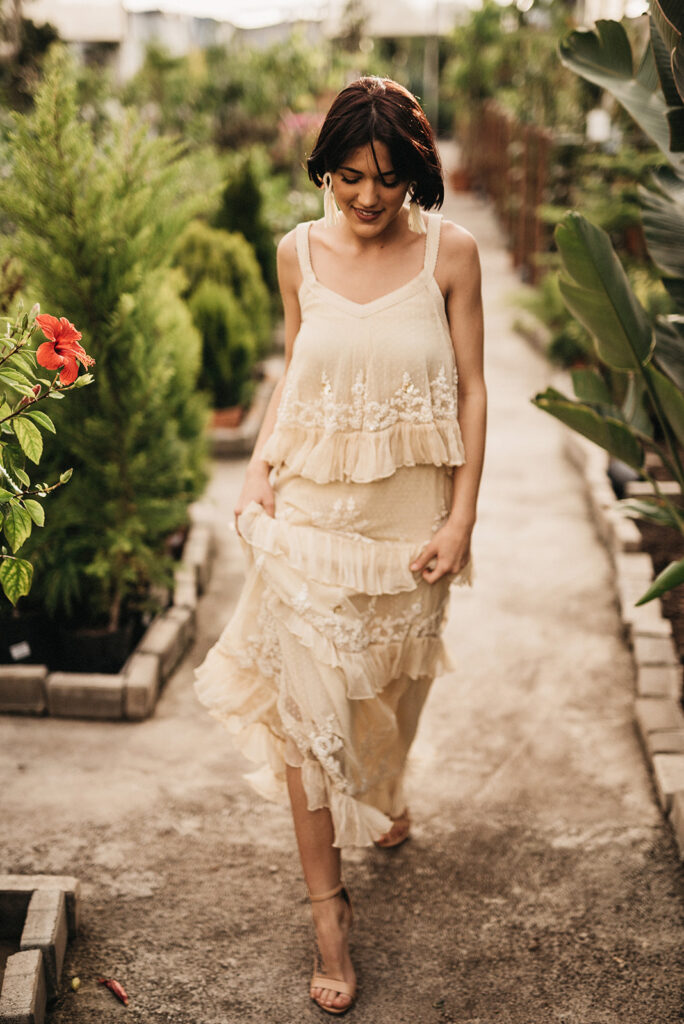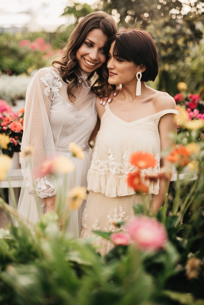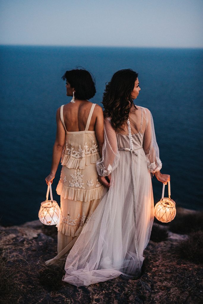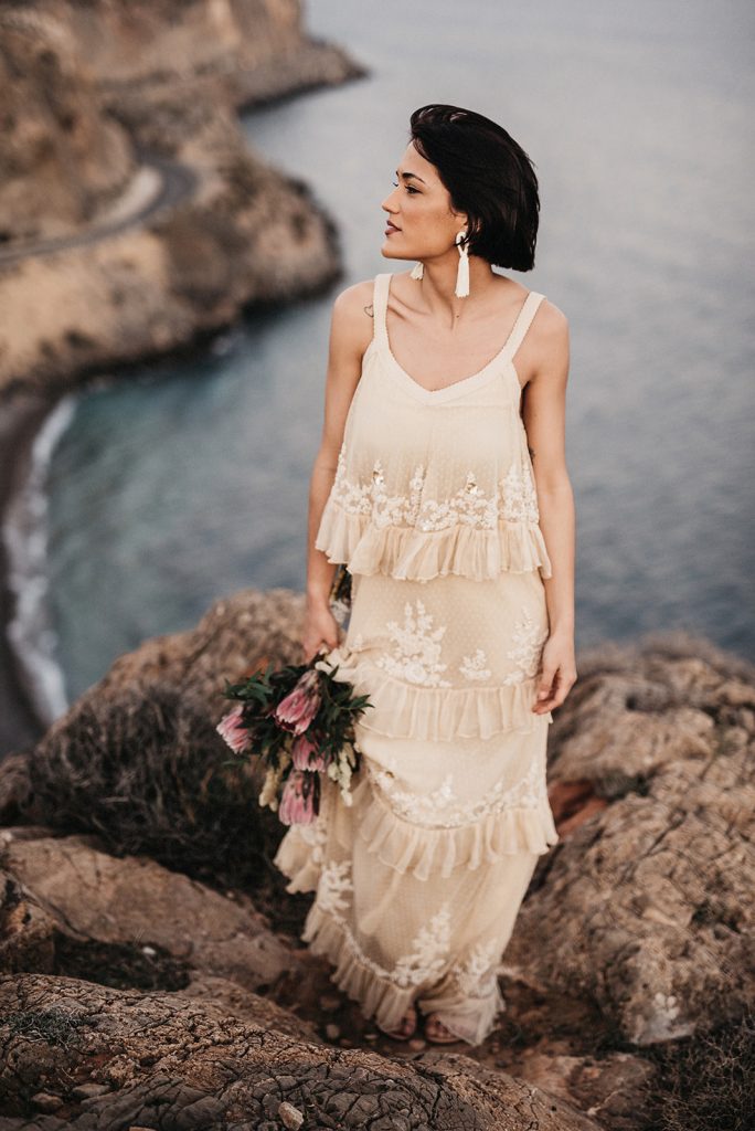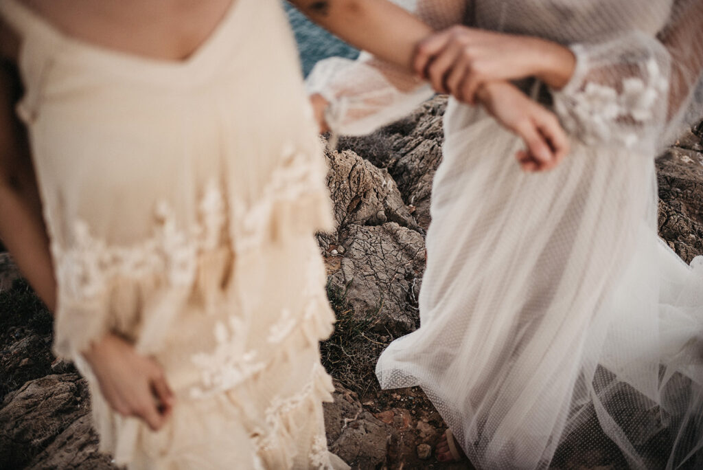 Después de todo este estudio o calentamiento de cabeza (que me obsesionó durante varias semanas después) me decidí a llamar a mi amiga Sofía Qostaly para que me dejara un vestido. A mi amiga Vero de Bedrock Moda para que me dejara otro, a los amigos de Gracia y La Penca (una de las mejores floristerías de Almería) y llamé a dos personas que ni se conocían para contarle la loca historia de lo que quería hacer. Marina y Anais, no son pareja, aunque al final de la tarde… veía muy buen rollo entre ellas jajajajaa.